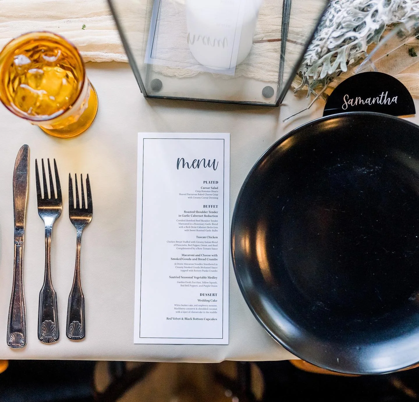 SAVE THE DATES • INVITATION SUITES • THANK YOU NOTES • CUSTOM ART & LOGOS • PROGRAMS • MENUS • FAVORS • PLACE CARDS & TABLE NUMBERS • COCKTAIL NAPKINS • WELCOME BAGS • CUSTOM SIGNAGE • APPAREL & MORE •